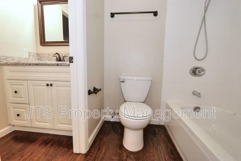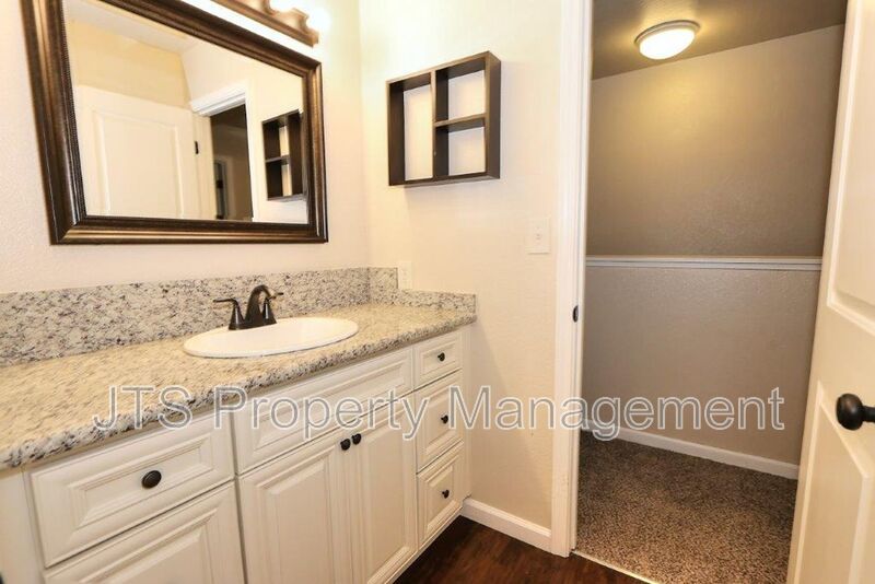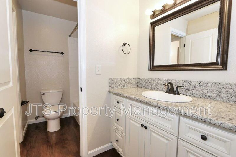 Remodeled home includes luxury plank floors downstairs and carpet upstairs. Granite counters in kitchen and baths, shaker style cabinets with black hardware. All new stainless steel appliances to include stove, dishwasher, built in microwave, garbage disposal, and refrigerator. New doors and knobs throughout. Designer 2-tone paint through-out, central heat and air, fenced yard/patio. Washer/dryer hook-ups, community pool. 12 month lease. Pets are not accepted.